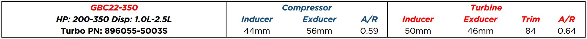 Garrett GBC22-350 Turbo (Standard Rotation) 44mm Comp Ind 0.64 A/R T25 Turbine Inlet 5-Bolt Turbine Outlet