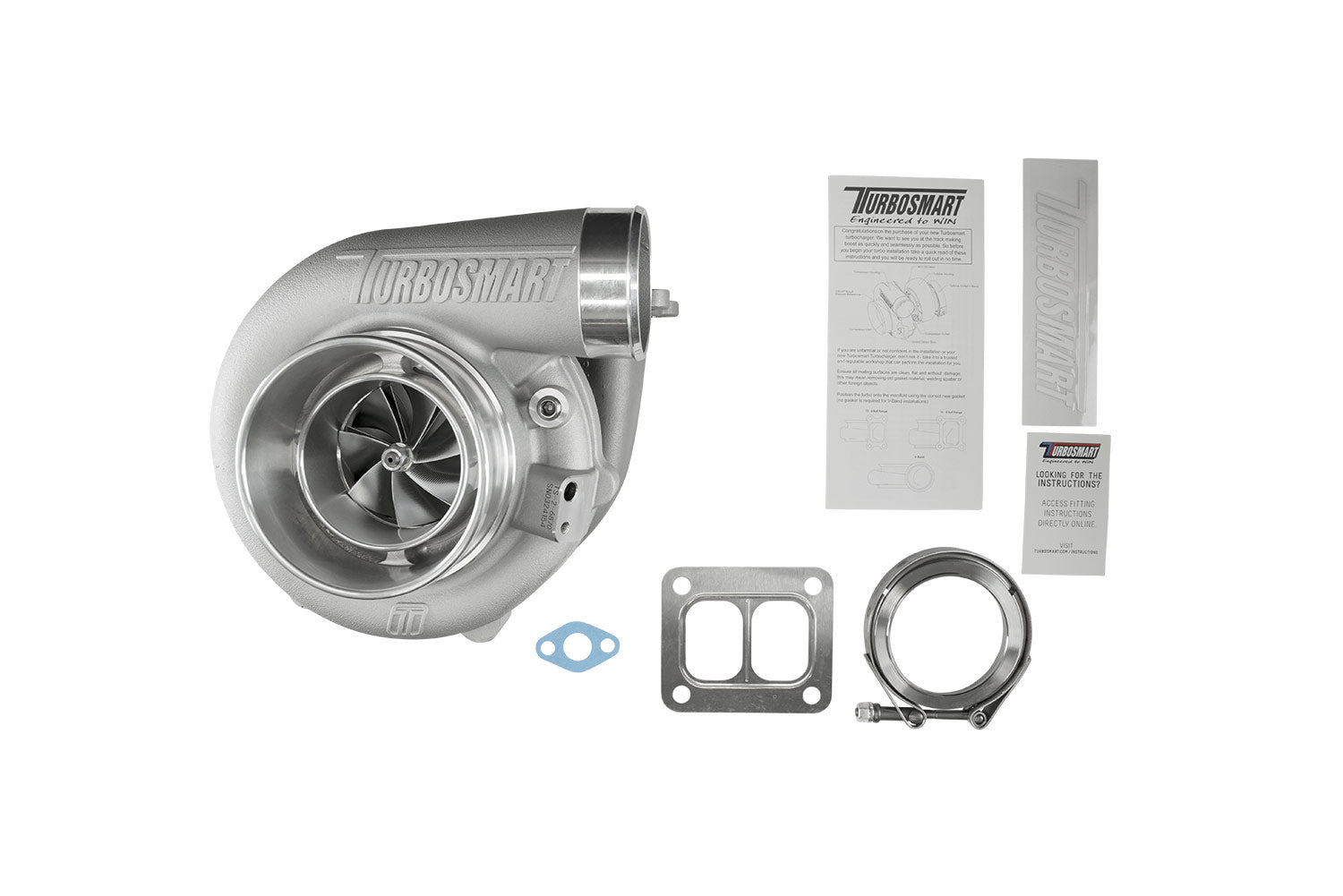 Jokainen Turbosmartin turboahdin toimitetaan vakiona kaiken tarvittavan kanssa asennusta varten: hitsauslaipat, V-panta-kiristimet, tiivisteet, öljyn syöttö- ja paluuliittimet sekä veden syöttö- ja paluuliittimet sisältyvät toimitukseen.
